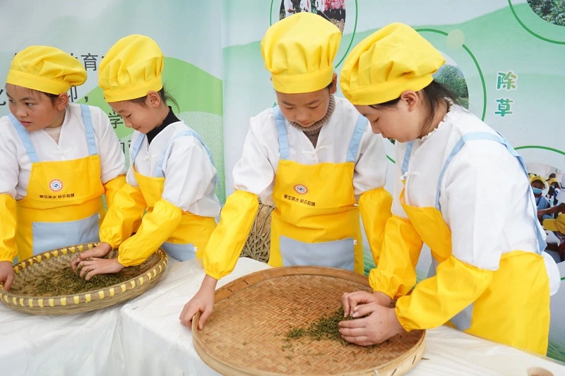 筠连县双腾小学学生在县“五育并举”展演活动中展示制茶(筠连县教体局供图)