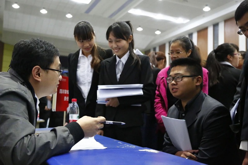 四川邮电职业技术学院的学生参加招聘会(图片由教育导报提供)