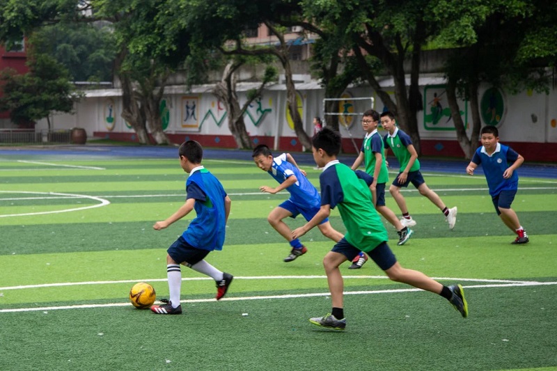 乐山市实验小学的孩子们在放学后参加足球训练(王浚录 摄)