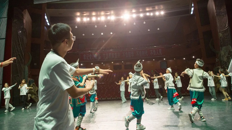 来自海峡两岸的大学生走进阿坝师范学院,围成同心圆共跳锅庄舞,感受中华传统文化的独特魅力(王浚录 摄)