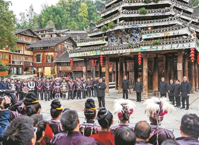从鼓楼起身,村民们纷纷簇拥过来,热烈鼓掌,高声向总书记问好。习近平高兴地回应说,侗族人民朴实、勤劳、有文化、有智慧,希望大家在中国式现代化进程中把乡村振兴搞得更好,祝愿大家的日子越过越红火。离开侗寨时,侗族群众深情地唱起《侗歌声声唱给党》,表达对总书记的热爱和依依不舍。习近平频频挥手,同乡亲们道别。