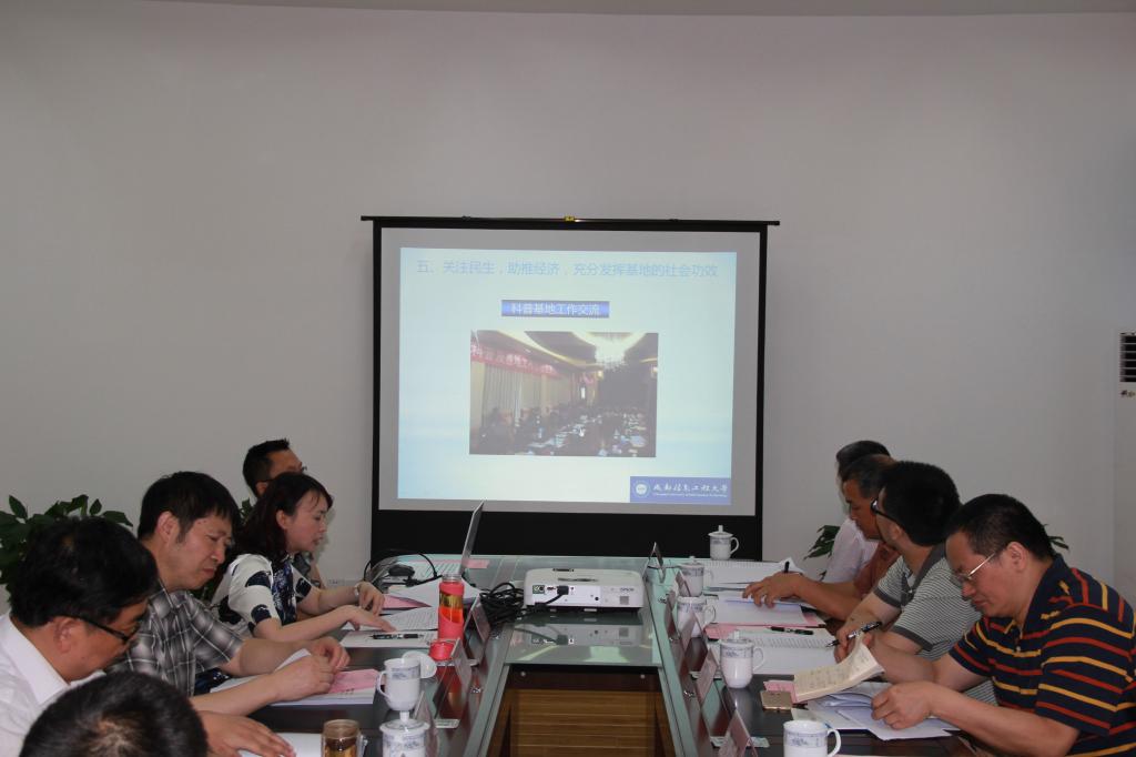 基地负责人曹邦英教授以“传播气象文化、科学防灾减灾、关注百姓民生、助力经济发展”为主题汇报了科普基地3年来就如何利用自身特色优势,充分发挥社科普及基地主阵地作用所开展的形式多样的社科普及工作做了汇报陈述。来自四川省委宣传部、四川师范大学、成都理工大学、西南民族大学的专家就基地软硬件设施建设如组织机构、人员配备、科普办公场所、设施设备、经费保障、科普资料及科普读物的出版、科普活动开展情况等进行实地查看,并就基地建设相关问题进行现场询问。专家组成员分别做了点评和建议。