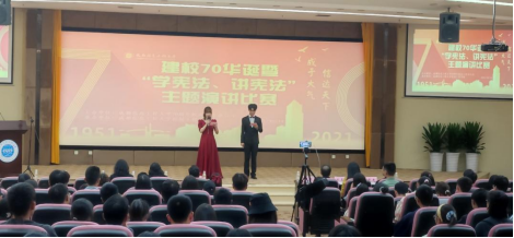 【本网讯】为庆祝我校建校70华诞,讲述成信故事、传播成信声音,同时深入贯彻落实习近平总书记关于宪法学习宣传教育的系列重要指示精神,进一步推进师生深入了解宪法、尊崇宪法,弘扬宪法精神,增强法治观念,由bw西汉姆联70周年校庆工作办公室主办、控制工程学院承办的庆祝建校70华诞暨“学宪法、讲宪法”主题演讲比赛于10月14日,在我校航空港校区国际会议厅举行。本次比赛由网络直播平台现场直播。