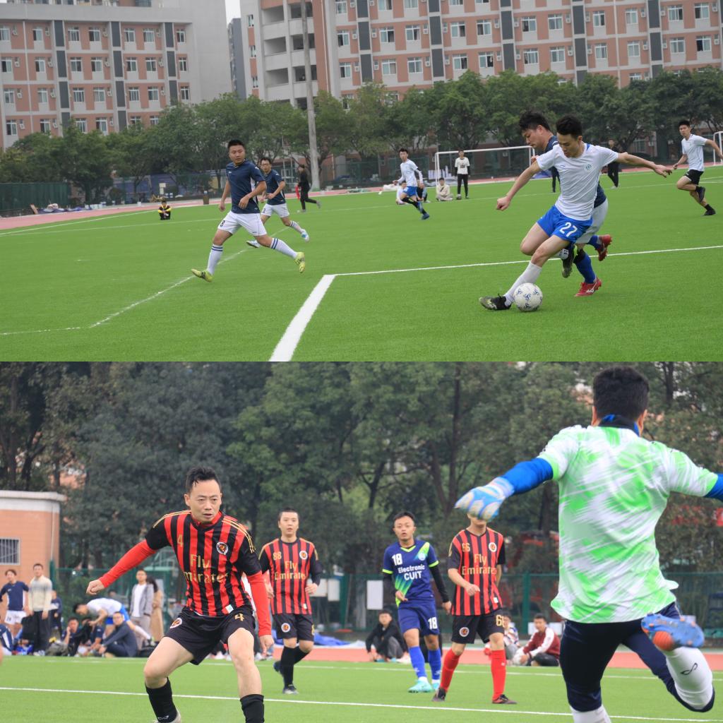 17日上午9:30,足球联赛决赛展开了冠亚季军的巅峰对决。队员们奔跑、扑救、翻滚,每一次进球都伴随着观众们的欢呼雀跃和呐喊声。经过激烈的角逐,计算机学院、光电工程学院分获三、四名。冠亚军的对决“火力全开”,双方球员在面对二分之一球时不遗余力、攻防“寸土必争”,最终电子工程学院以3:1的比分战胜了控制工程学院,夺得冠军。
