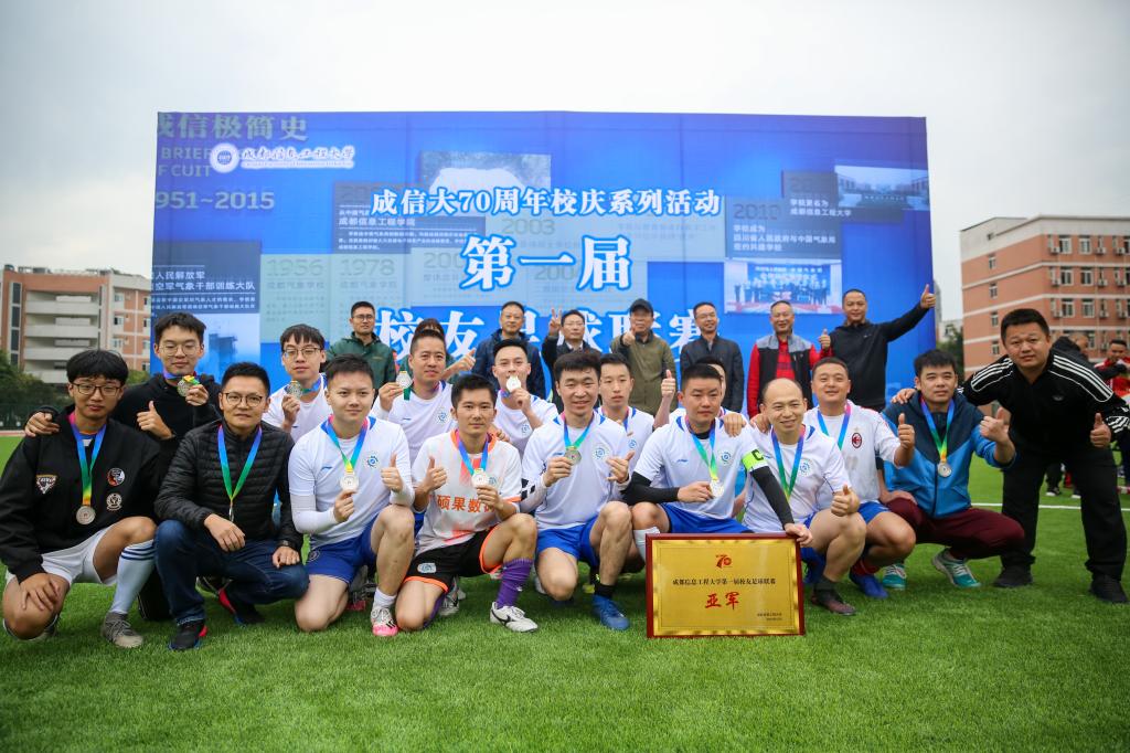 瑟瑟秋风无法熄灭校友们的热情,绿色的草坪与彩色的队服交相辉映,成为成信大赛场上的亮丽风景线。比赛体现出成信人顽强拼搏、团结协作的精神,展现出校友们追忆校园芳华的浓厚情谊,以及对母校建校70周年美好的祝福。