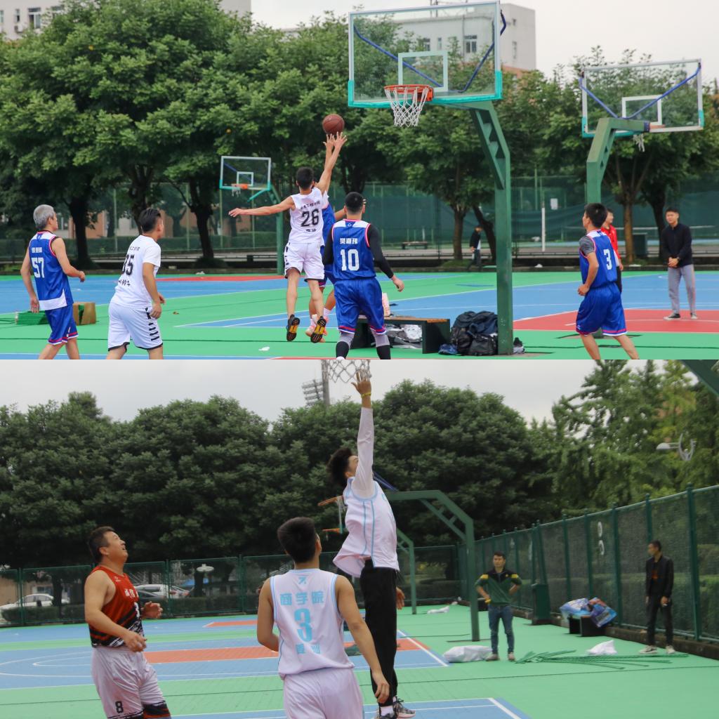 17日上午10:00,篮球联赛“鸣锣开战”,上午进行两场半决赛的角逐,分别是教职工队对阵商学院,光电工程学院对阵通信学院。参赛队员在赛场上的飒爽英姿令观众们赞叹不已。