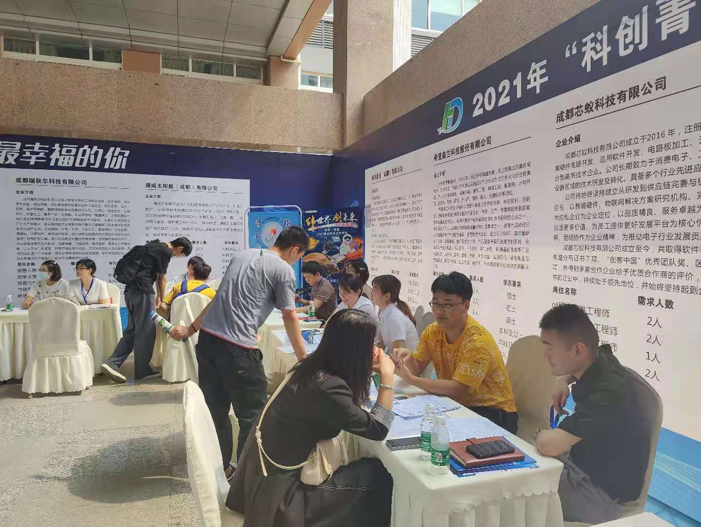 在其它会场,二十余家双流企业在双中心二楼平台进行小型招聘会,各专业应届毕业同学,其中不乏大三年级的学生,踊跃参与现场招聘,积极投递个人简历。