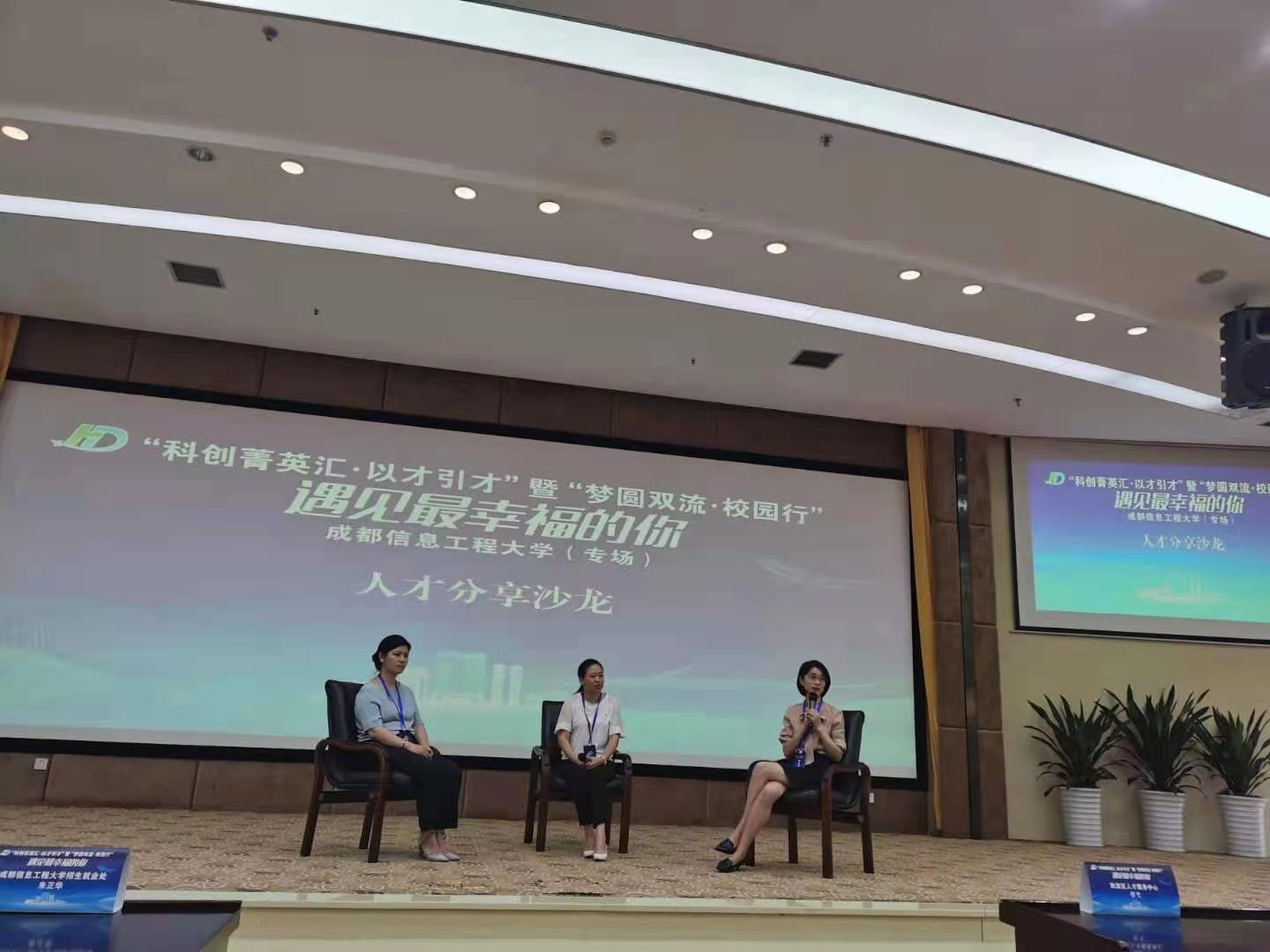 学校在国际会议厅与双中心二楼平台设立了两个分会场。在国际会议厅分会场,双流区高层次人才专家、双流区主导产业(航空经济、电子信息、生物医药)22家重点企业、区人社局、区人才管理中心,我校招生就业处、教务处负责人,相关学院负责人以及部分2021年应届毕业生、2022届在校大学生齐聚一堂。我校招生就业处副处长朱正华代表学校致辞,对来校企业表示热烈欢迎和感谢,并向在座企业简短介绍了我校的情况。学校教务处副处长李代伟向与会的政府、企业人员介绍了我校目前校企合作的近况、优势及未来发展项目。现场的企业代表向同学们分享了企业的概况、企业制度文化、用人理念等内容,区人才服务中心的专家讲解了双流区的各项人才政策。现场还举办了小型人才分享沙龙,由三位企业资深的人力资源专家给大家分享他们的工作经历、生活感悟,并为同学们解疑答惑。参会的企业专家、学生、学校相关部门负责人就关心的问题进行了热烈的讨论。