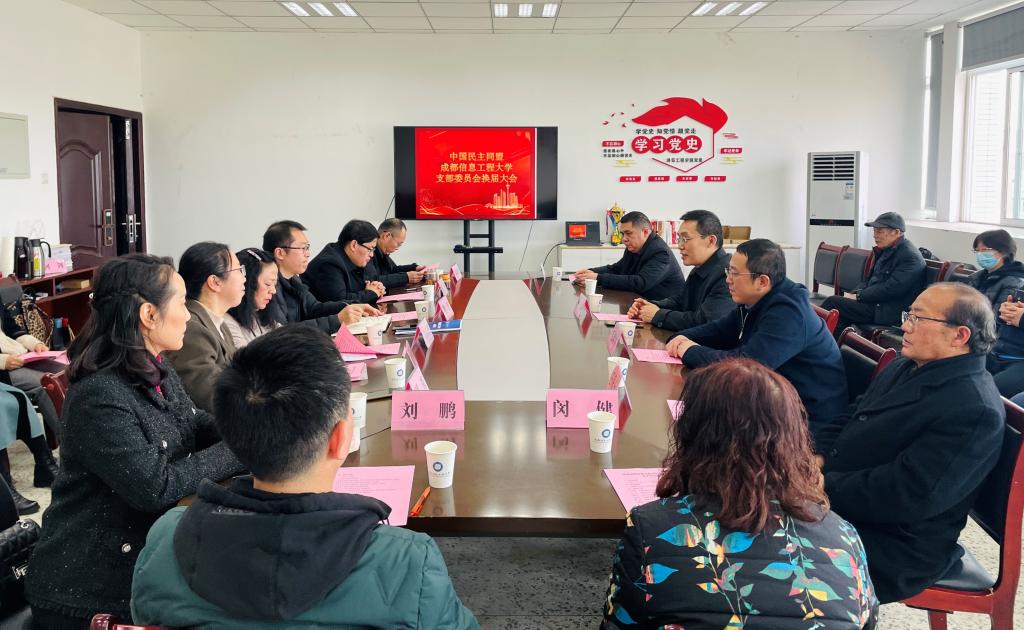 何立新对支部换届取得圆满成功表示祝贺,他说,成信大支部是成都市民盟高校组织的重要组成部分,过往的几届都在成都市民盟的发展建设中发挥了应有的作用,同时,感谢过往几届组委成员对成都市民盟做出的支持和贡献。他寄语新一届领导班子:一是思想上抓好政治思想学习,做到理论上清晰,政治上坚定,同时要加强民盟历史和精神的传承;二是加强组织队伍的建设,民盟一直以来主要是由高质量、有特色的人员构成,要继续保持优势,进一步加强队伍的高质量建设与发展;三是希望老师们在各自领域为社会和国家的发展提供力量,实现科技成果的转化与社会服务相连接。