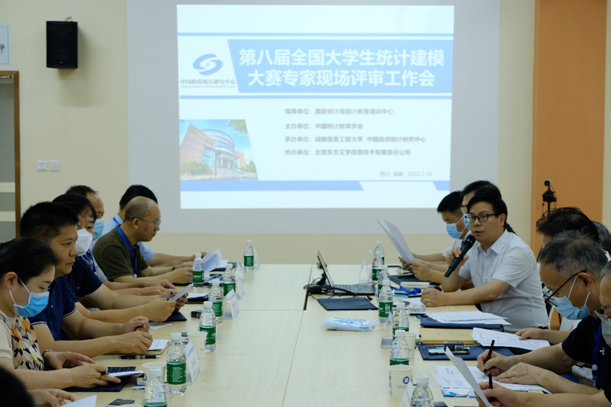 【本网讯】7月16日,由国家统计局统计教育培训中心指导,中国统计教育学会、教育部高等学校统计学类专业教学指导委员会、全国应用统计专业学位研究生教育指导委员会联合主办,bw西汉姆联和中国政府统计研究中心承办的2022年(第八届)全国大学生统计建模大赛现场评审会在我校龙泉校区经管实验中心顺利举行。评审委员会成员及20余位国内“双一流”大学等的统计学界专家、教授参加了此次评审会。国家统计局教育培训中心何继庆处长参加评审会并致辞,我校副校长于世祥、统计学院院领导和部分师生参加了评审会开幕式,开幕式由统计学院院长李勇主持。