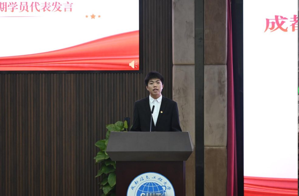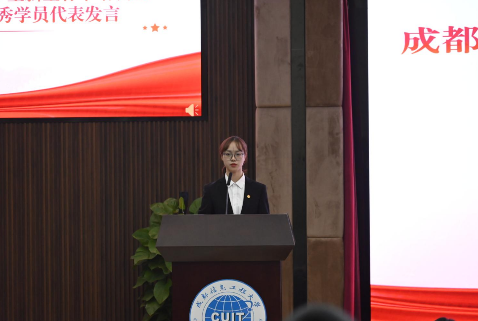 “青马工程”大学生新生骨干培训班第十三期优秀学员代表何雨珊发言。他说,团校不仅是学习团员基本知识和先进理论思想的阵地,更是了解时政、明确工作重点、提高理论水平的平台。学员们应该把握时代机遇,敢想敢为又善作善成,立志做有理想、敢担当、能吃苦、肯奋斗的新时代好青年。