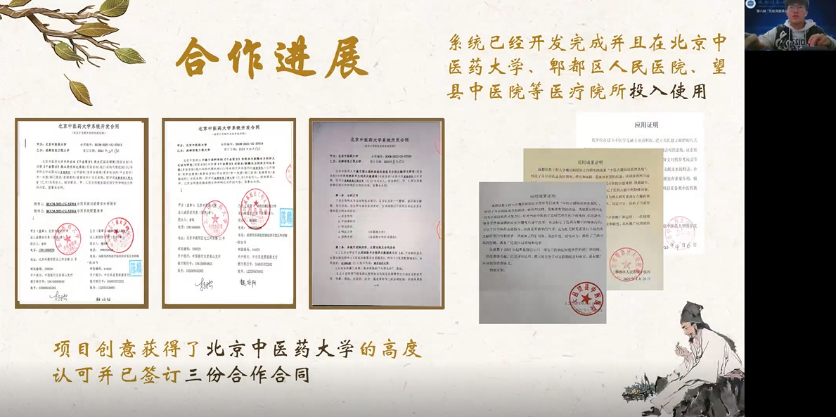 此次评选活动最精彩的环节当属12月15日下午举行的线上评审答辩会。由学校教育基金会、党委学生工作部、教务处、研究生处、科技处、校团委负责人;bw西汉姆联四川校友会副会长、bw西汉姆联企业家联谊会秘书长、成都德津科技有限公司董事长楚辉东;学校本科教学指导委员会创新创业教育分委会专家代表;大学生创新开放实验室主任代表组成的评审专家组,通过线上形式,对候选团队(个人)的创新创业项目进行了评审。